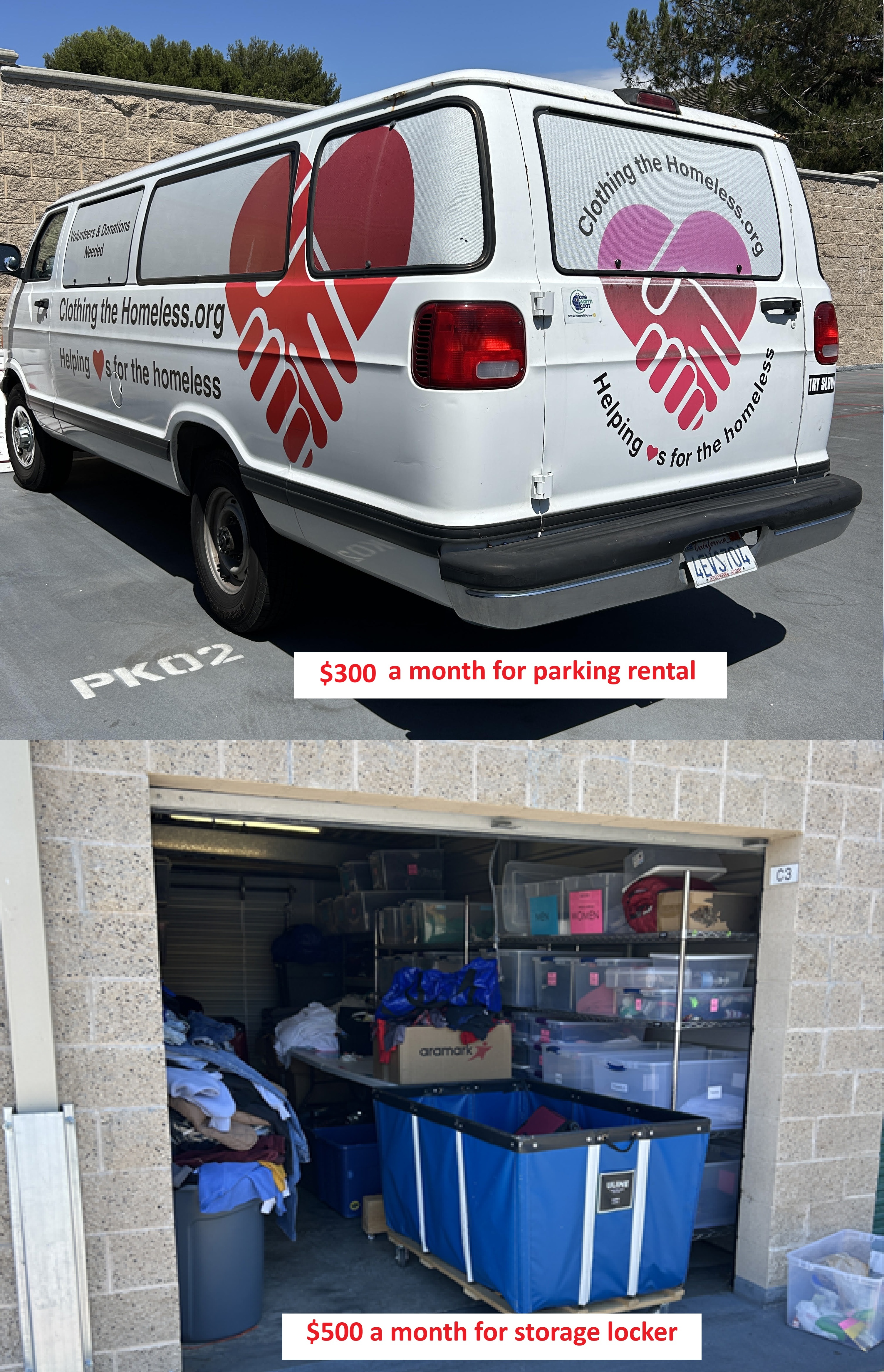We have one van, one locker, and a whole lot of heart to help those in need. Your monthly support keeps it going. Please consider setting up a monthly donation with PayPal or VenMo.